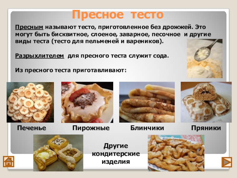 Из пресного теста приготавливают: