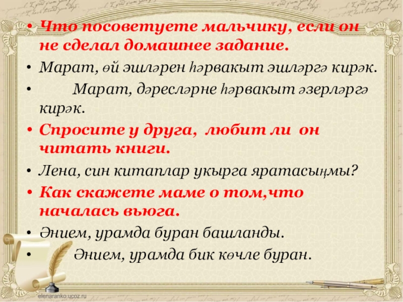 Марат, дәресләрне һәрвакыт әзерләргә кирәк.