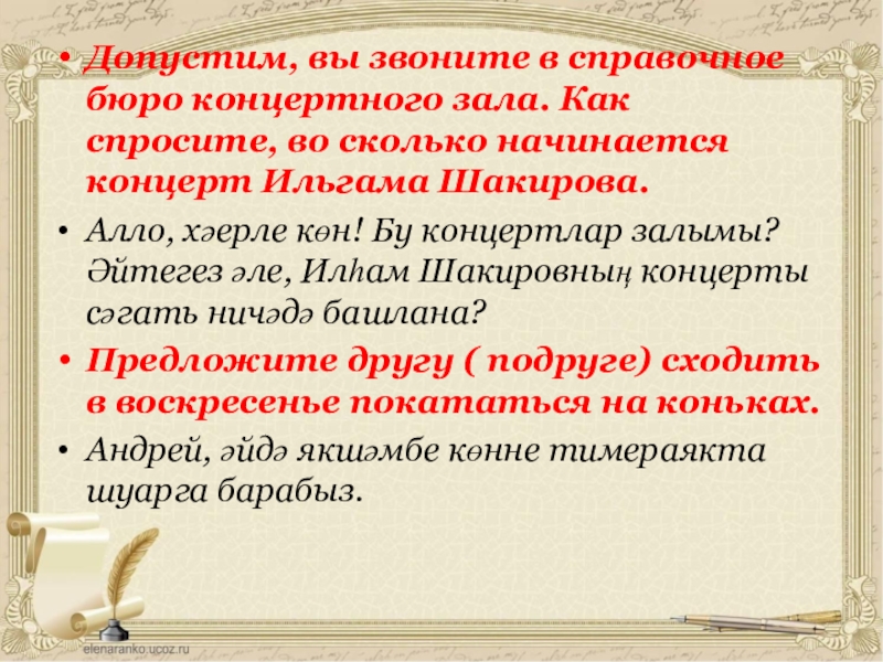 Алло, хәерле көн! Бу концертлар залымы? Әйтегез әле, Илһам Шакировның концерты сәгать ничәдә башлана?