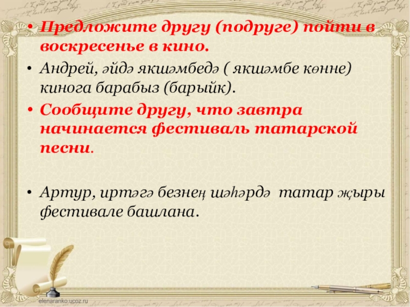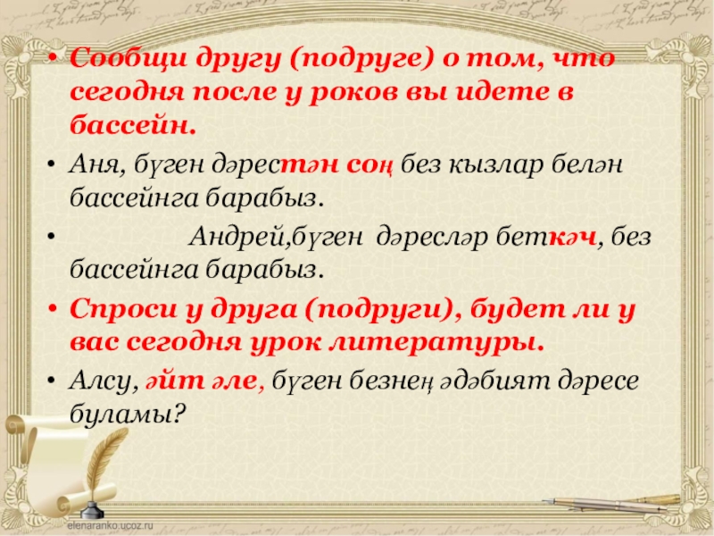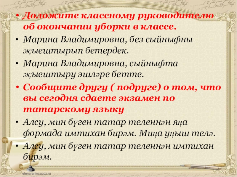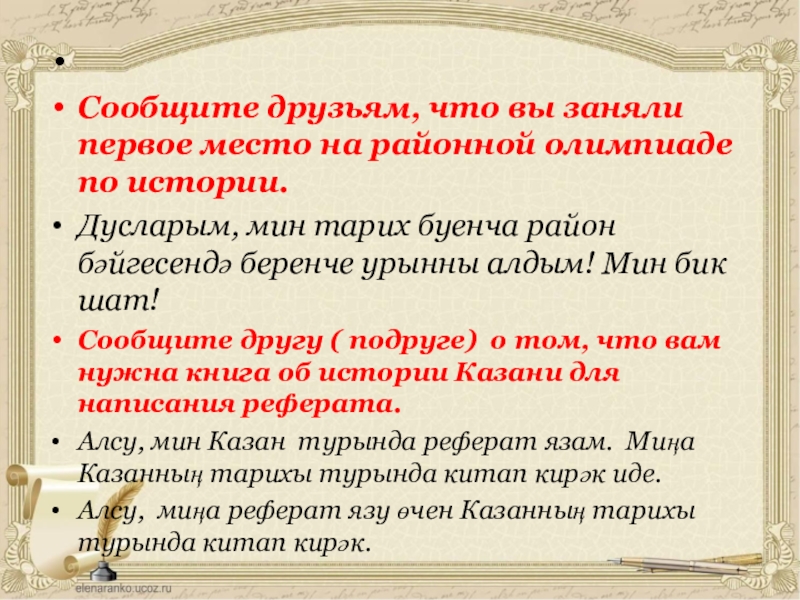 Сообщите другу ( подруге) о том, что вы сегодня сдаете экзамен по татарскому языку