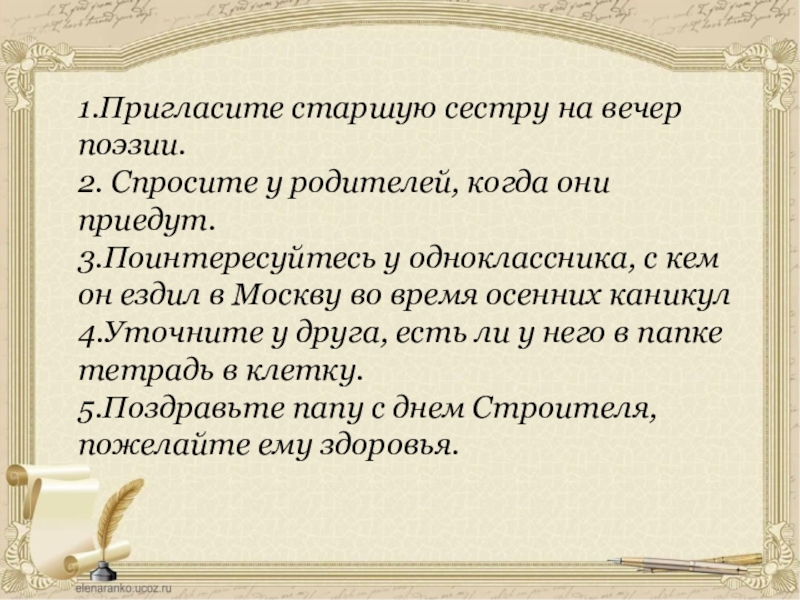 2. Спросите у одноклассника, какое стихотворение надо выучить по русской литературе.