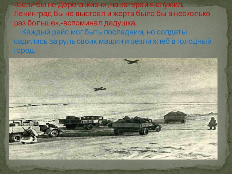 Слайд 11«Если бы не Дорога жизни ,на которой я служил, Ленинград бы