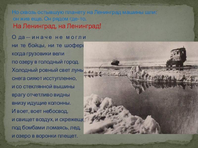 Но сквозь остывшую планету на Ленинград машины шли: