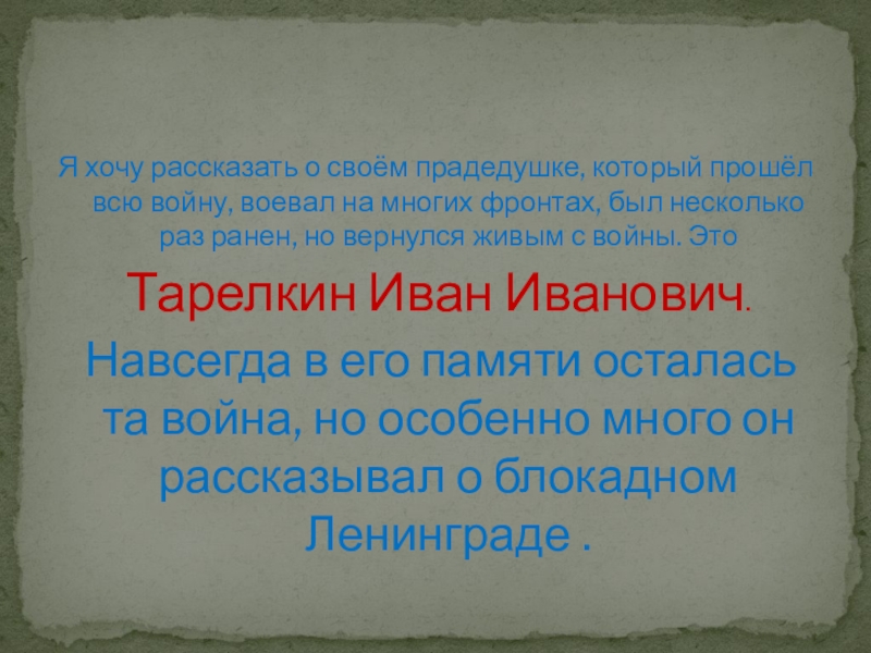 Слайд 8Я хочу рассказать о своём прадедушке, который прошёл всю войну, воевал