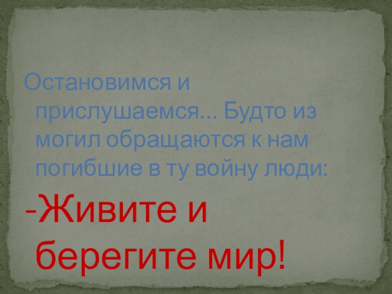Слайд 17Остановимся и прислушаемся… Будто из могил обращаются к нам погибшие в
