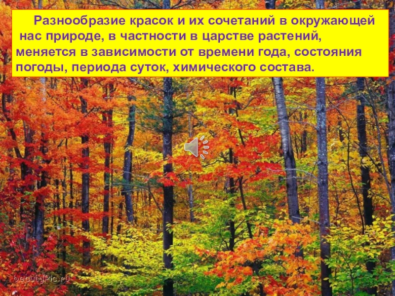 Слайд 3 Разнообразие красок и их сочетаний в окружающей