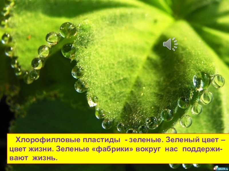 Слайд 10 Хлорофилловые пластиды - зеленые. Зеленый цвет –