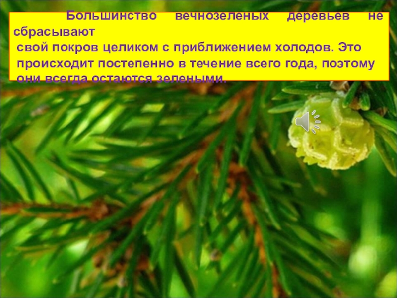 Слайд 27 Большинство вечнозеленых деревьев не сбрасывают