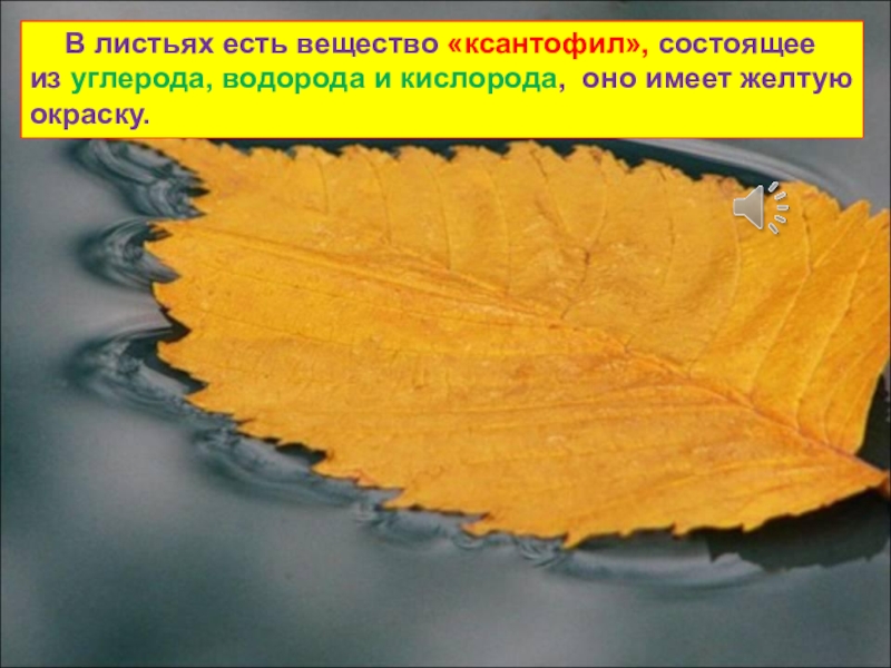 Слайд 11 В листьях есть вещество «ксантофил», состоящее из