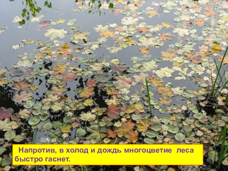 Слайд 23 Напротив, в холод и дождь многоцветие леса быстро гаснет.