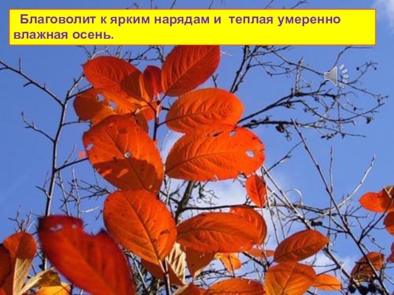 Слайд 22 Благоволит к ярким нарядам и теплая умеренно влажная осень.