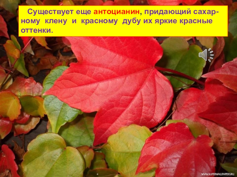 Слайд 13 Существует еще антоцианин, придающий сахар-ному клену и красному дубу