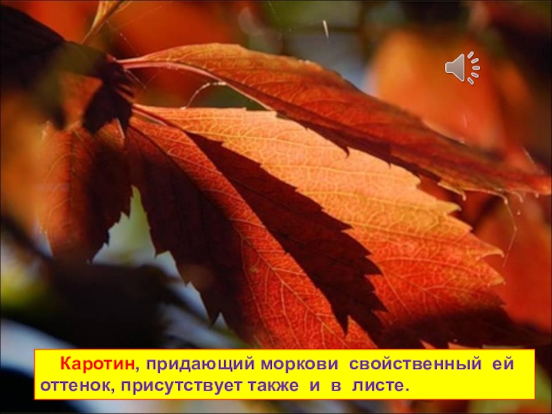 Слайд 12 Каротин, придающий моркови свойственный ей оттенок, присутствует также и