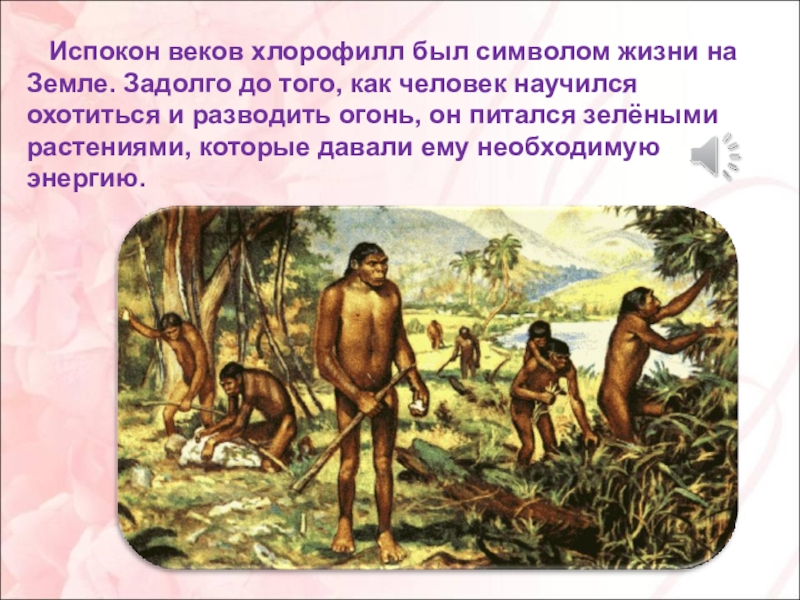 до того, как человек научился охотиться и разводить огонь, он питался зелёными растениями, которые давали ему необходимую энергию.