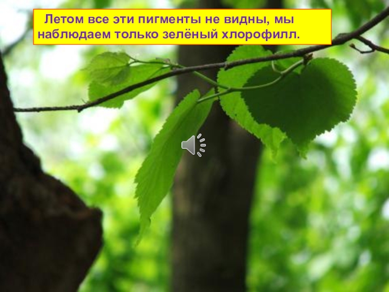 Слайд 14 Летом все эти пигменты не видны, мы наблюдаем только зелёный