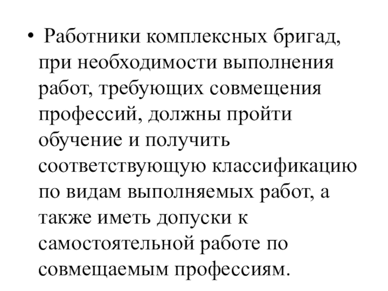 Слайд 12 Работники комплексных бригад, при необходимости выполнения работ, требующих совмещения профессий,
