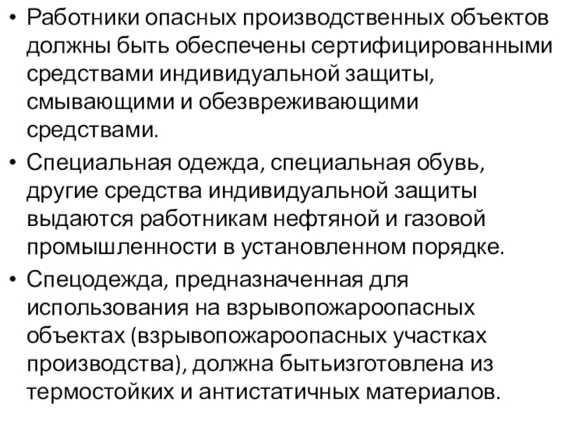 Слайд 13Работники опасных производственных объектов должны быть обеспечены сертифицированными средствами индивидуальной защиты,