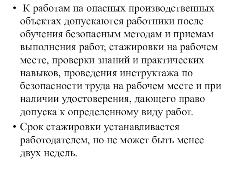 Слайд 7 К работам на опасных производственных объектах допускаются работники после обучения безопасным
