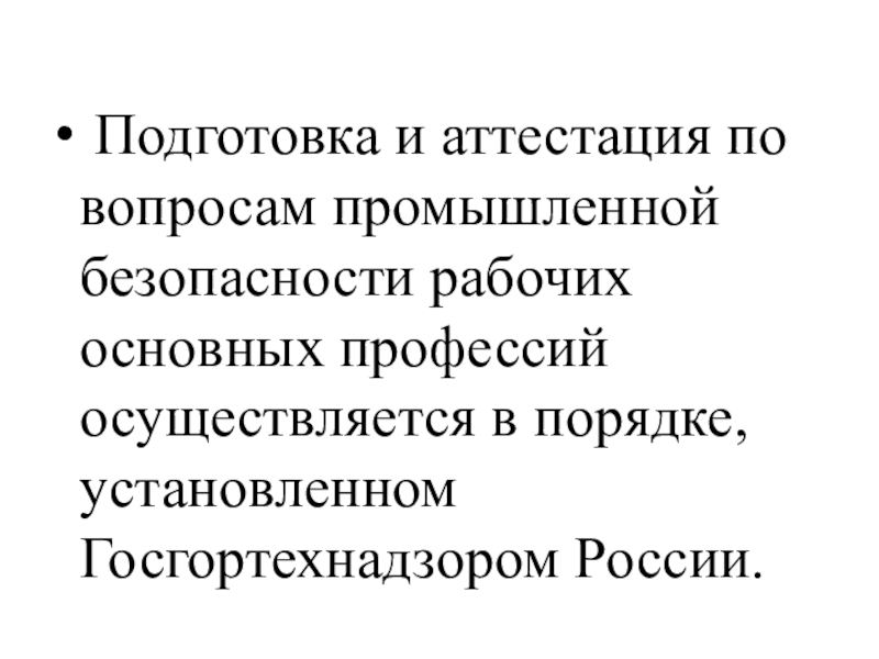 Слайд 6 Подготовка и аттестация по вопросам промышленной безопасности рабочих основных профессий осуществляется