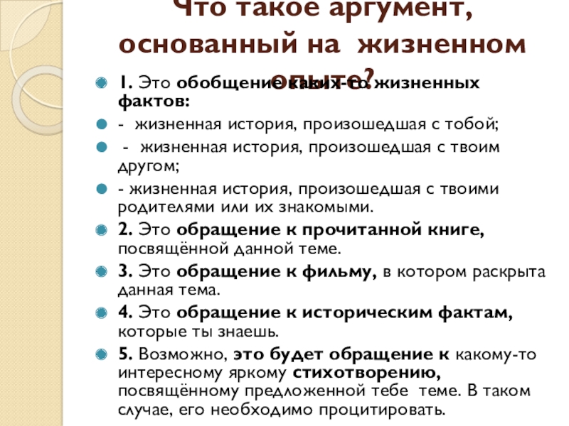 Слайд 10Что такое аргумент, основанный на жизненном опыте?