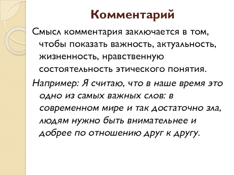 Смысл комментария заключается в том, чтобы показать важность, актуальность, жизненность, нравственную