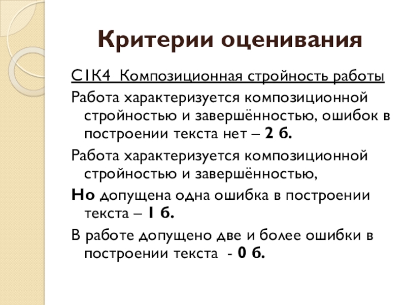 Работа характеризуется композиционной стройностью и завершённостью, ошибок