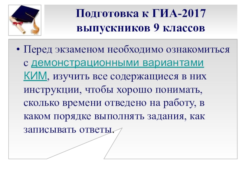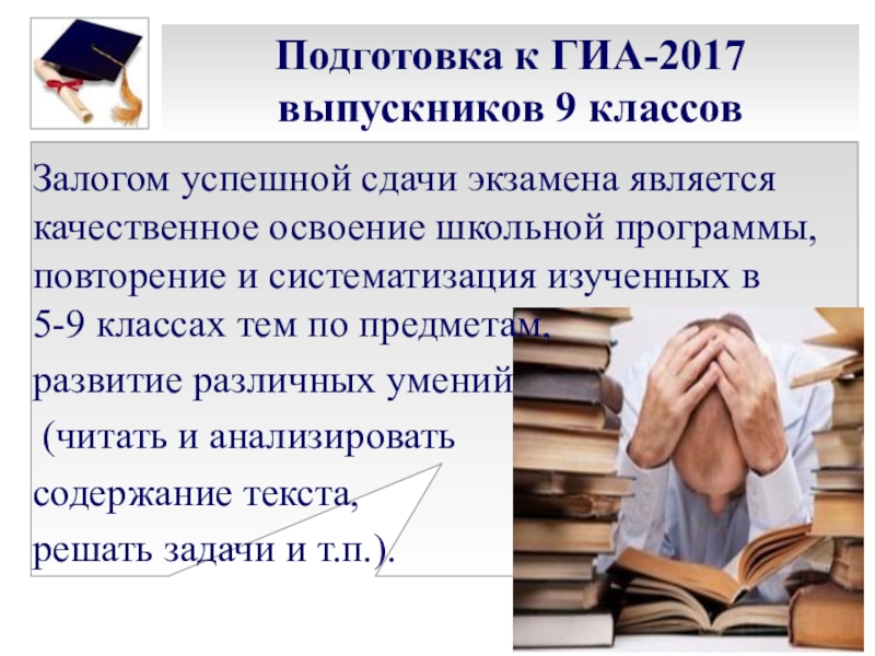 Слайд 24Подготовка к ГИА-2017 выпускников 9 классов