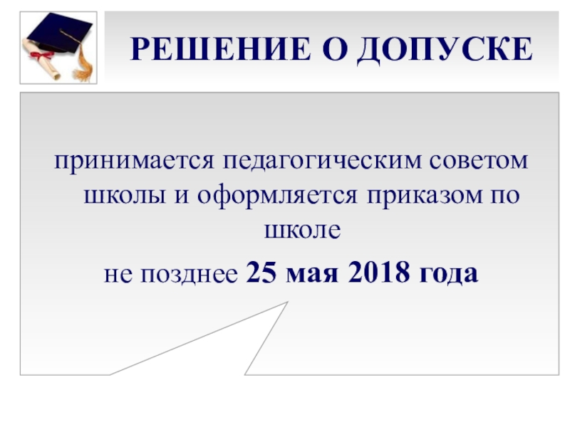Слайд 6РЕШЕНИЕ О ДОПУСКЕ