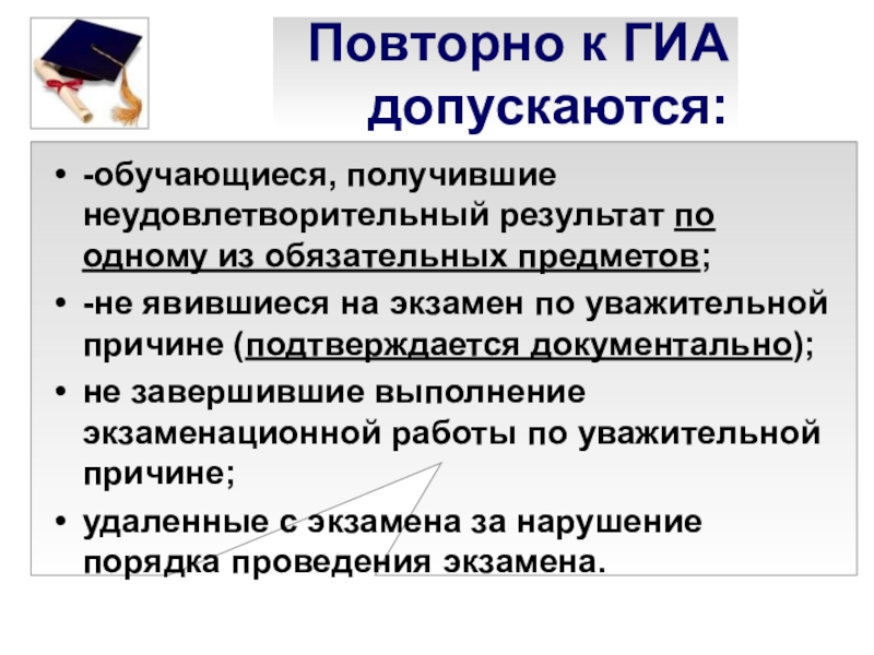 Слайд 15Обучающимся, не прошедшим ГИА,