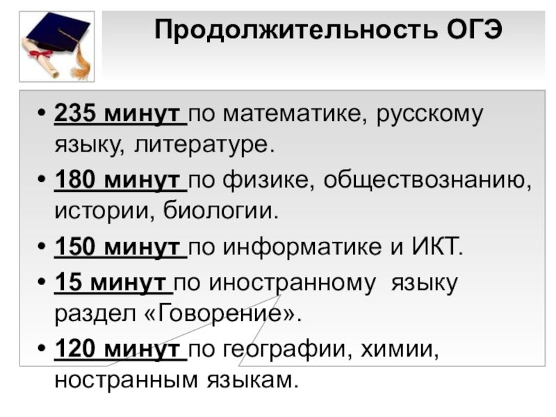 В день экзамена участник ОГЭ прибывает в пункт проведения экзамена за 30 минут до его начала.