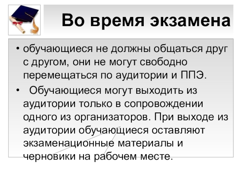 Экзамен сдается обучающимися самостоятельно, без помощи посторонних лиц.