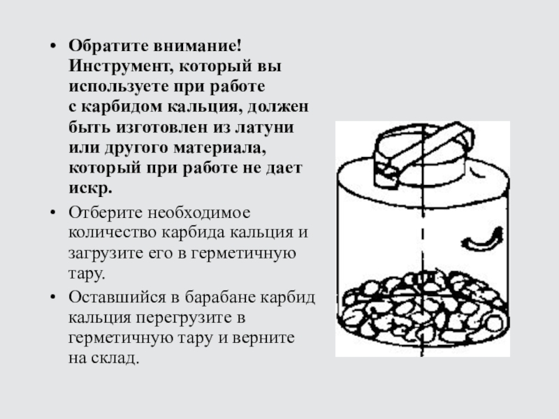 Слайд 6Получение карбида кальция со склада и подготовка его к загрузке в