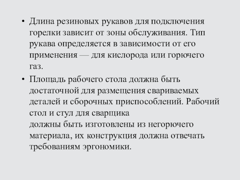 Слайд 12Длина резиновых рукавов для подключения горелки зависит от зоны обслуживания. Тип