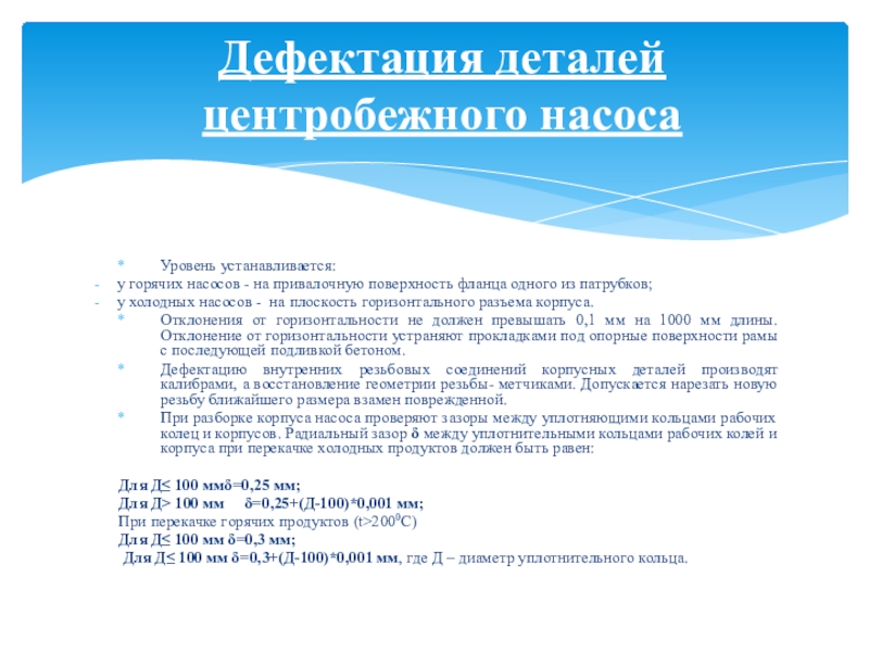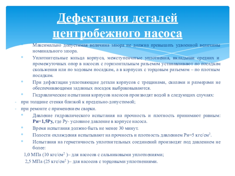 Дефектация деталей центробежного насоса
