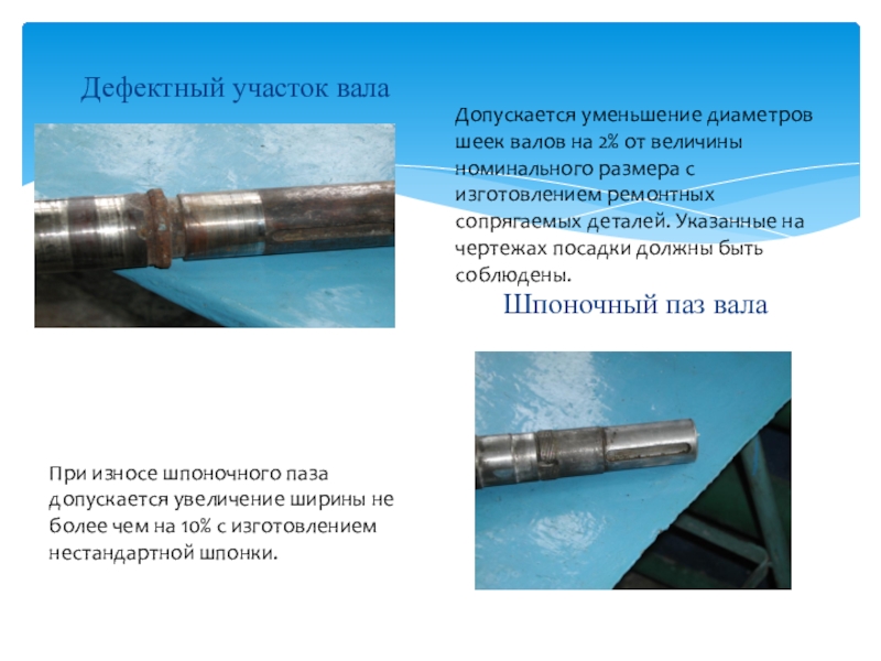 При износе шпоночного паза допускается увеличение ширины не более чем на 10% с изготовлением нестандартной шпонки.