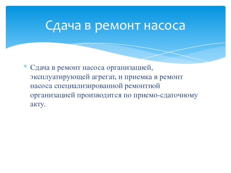 Сдача в ремонт насоса