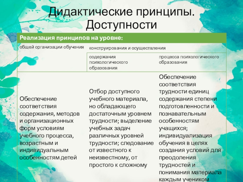 Слайд 12Дидактические принципы. Доступности