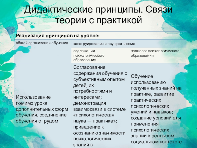 Слайд 9Дидактические принципы. Связи теории с практикой