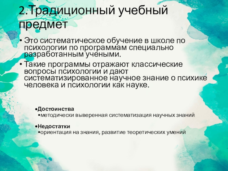 Слайд 42.Традиционный учебный предмет