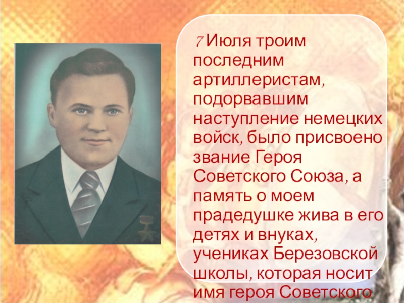 7 Июля троим последним артиллеристам, подорвавшим наступление немецких