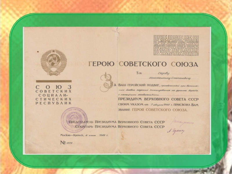 войск, было присвоено звание Героя Советского Союза, а память о моем прадедушке жива в его детях и внуках, учениках Березовской школы, которая носит имя героя Советского Союза Константина Седова.