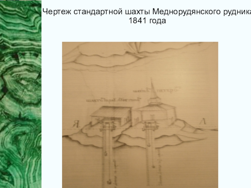 Слайд 8Чертеж стандартной шахты Меднорудянского рудника 1841 года