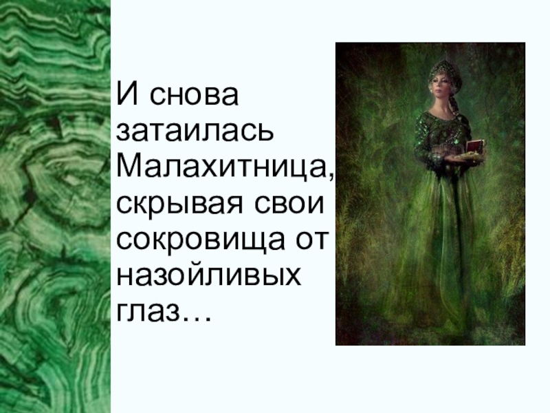 Слайд 13И снова затаилась Малахитница, скрывая свои сокровища от назойливых глаз…