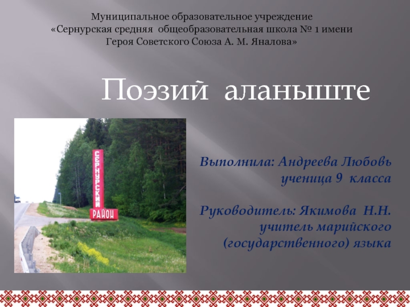 «Сернурская средняя общеобразовательная школа № 1 имени Героя Советского Союза А. М. Яналова»