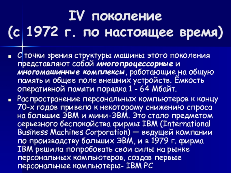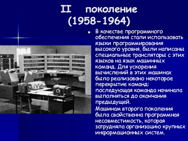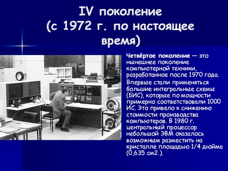 на поколения — весьма условная, нестрогая классификация по степени развития аппаратных и программных средств, а также способов общения с компьютером.