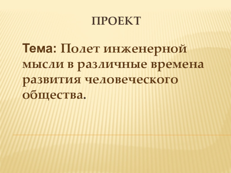 Проект Тема: Полет инженерной мысли в различные времена развития человеческого общества.