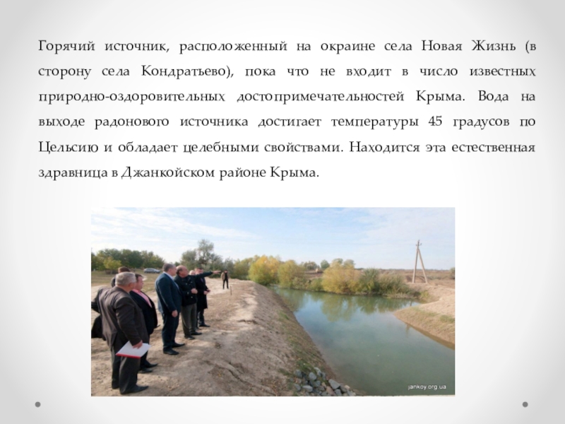 Слайд 3Горячий источник, расположенный на окраине села Новая Жизнь (в сторону села
