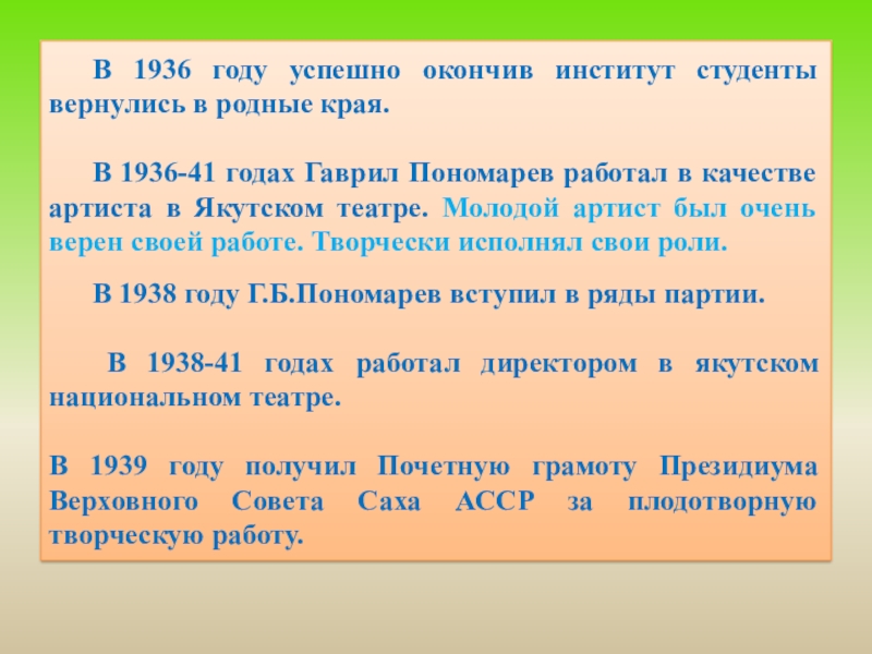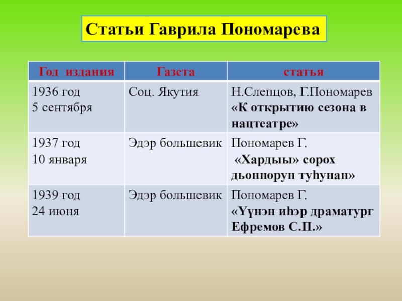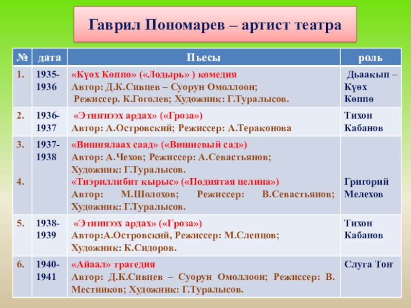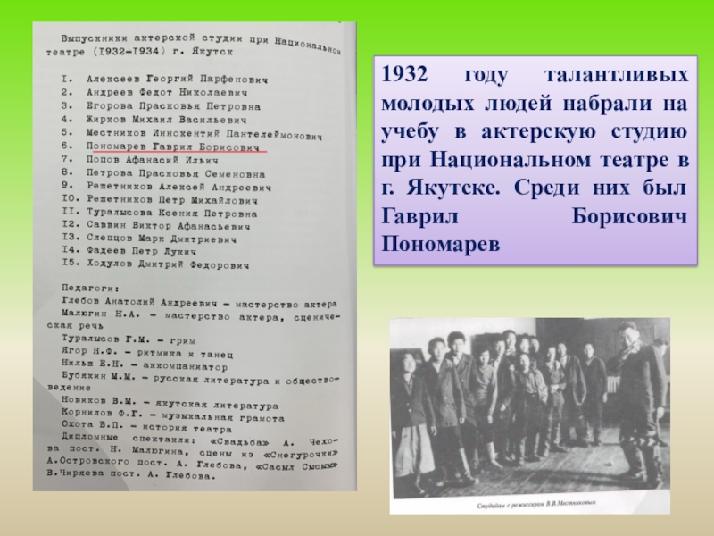 при Национальном театре в г. Якутске. Среди них был Гаврил Борисович Пономарев