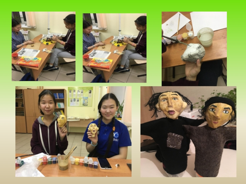 Поставленный сюжет мы показали на настольном театре. Сделали кукол двух героев из папье маше.