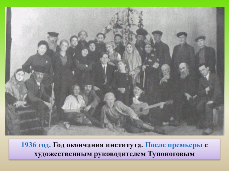 Слайд 101936 год. Год окончания института. После премьеры с художественным руководителем Тупоноговым